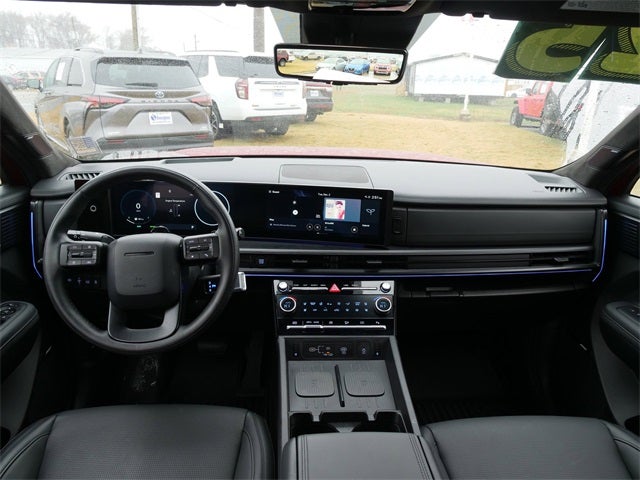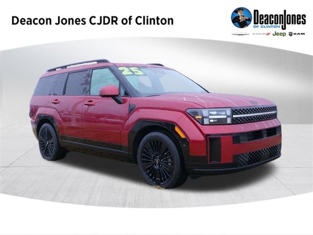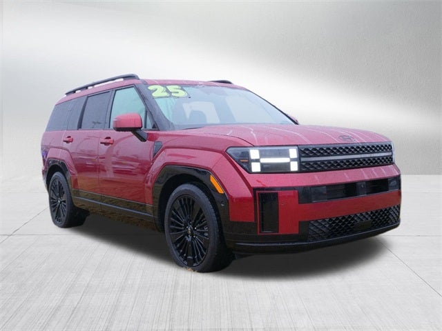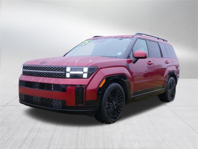 CARFAX One-Owner. Ultimate Red 2025 Hyundai Santa Fe Hybrid Calligraphy I4 6-Speed Automatic with Shiftronic AWD Option Group 01, I4, 12 Speakers, 3rd row seats: bench, 4-Wheel Disc Brakes, ABS brakes, Air Conditioning, Alloy wheels, AM/FM radio: SiriusXM, Apple CarPlay & Android Auto, Auto High-beam Headlights, Auto-dimming Rear-View mirror, Automatic temperature control, Brake assist, Bumpers: body-color, Cargo Tray, Carpeted Floor Mats, Delay-off headlights, Driver door bin, Driver vanity mirror, Dual front impact airbags, Dual front side impact airbags, Electronic Stability Control, Emergency communication system, Exterior Parking Camera Rear, First Aid Kit, Four wheel independent suspension, Front anti-roll bar, Front Bucket Seats, Front Center Armrest, Front dual zone A/C, Front reading lights, Fully automatic headlights, Garage door transmitter: HomeLink, Heads-Up Display, Heated & Ventilated Front Bucket Seats, Heated door mirrors, Heated front seats, Heated rear seats, Heated steering wheel, Illuminated entry, Knee airbag, Leather steering wheel, Low tire pressure warning, Memory seat, Navigation System, Occupant sensing airbag, Outside temperature display, Overhead airbag, Overhead console, Panic alarm, Passenger door bin, Passenger vanity mirror, Power door mirrors, Power driver seat, Power Liftgate, Power moonroof, Power passenger seat, Power steering, Power windows, Premium Nappa Leather Seat Trim, Radio: AM/FM/HD Bose Premium Audio System, Rain sensing wipers, Rear anti-roll bar, Rear side impact airbag, Rear window defroster, Rear window wiper, Remote keyless entry, Security system, Speed control, Speed-sensing steering, Split folding rear seat, Spoiler, Steering wheel mounted audio controls, Tachometer, Telescoping steering wheel, Tilt steering wheel, Tow Hitch, Traction control, Transverse Panel, Trip computer, Turn signal indicator mirrors, Variably intermittent wipers, Ventilated front seats, and Wheels: 20 x 8.5J Unique Dark Finish Alloy.